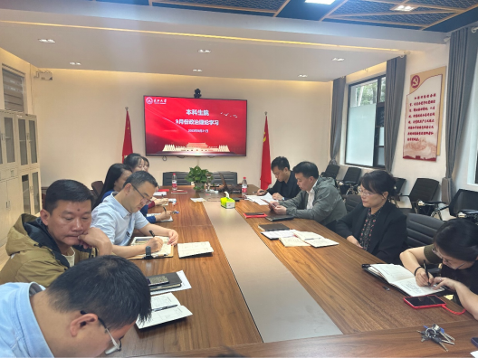 9月21日下午,本科生院在工字楼209会议室和宝石花社区102同时开展9月政治理论学习,党支部书记张科同志主持,本科生院全体教职工参加了本次学习。
