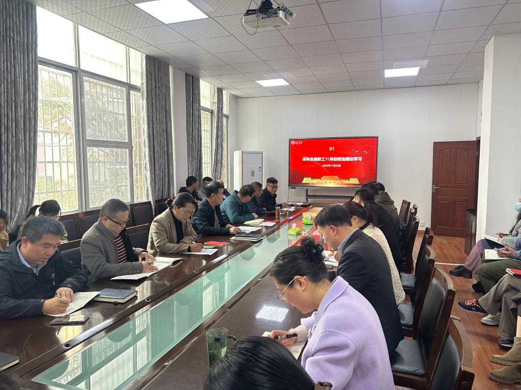 本科生院讯(通讯员 何宁)11月23日下午,本科生院党支部在东校区工字楼209会议室开展11月份政治理论学习及支部主题党日活动,支部书记张科主持会议。