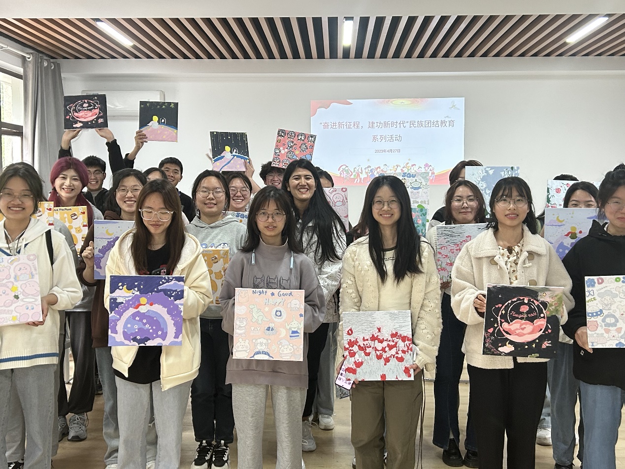 随后,活动正式开始,同学们仔细聆听工作人员的讲解,便投入到专心的彩绘过程中。大家通过交流,不仅探讨了绘画和制作技巧,更是畅谈自己的“兴趣爱好、学习生活、家乡美食”等,加深了彼此印象,缔结了真挚友谊。同学们纷纷表示,通过活动,感受到了国家和学校对少数民族学子浓浓的关爱。