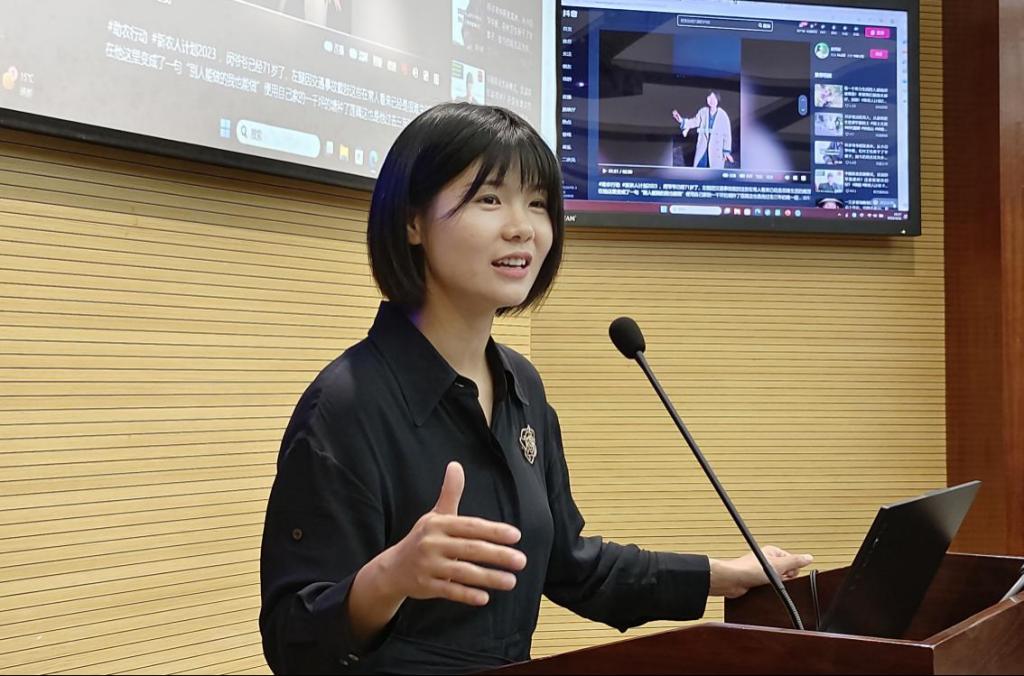 本次活动邀请了湖北省2022年度“巾帼建功标兵”、洪湖严选电子商务有限公司主播赵聪女士开讲。她从个人第一条爆火的短视频作品入手,分享自己进入电子商务领域的背景,并结合创业经历和成长心得,讲述了一路不懈奋斗的故事。赵聪把直播间搬到藕塘,以电商直播小支点撬动乡村振兴新发展,助力洪湖莲藕的销路实现数字化转型,成为了大家心目中的榜样。她对参会的同学们提出期望:“愿大家勇敢逐梦,不畏艰辛、不惧困难、敢于创新,开创属于自己的事业!”