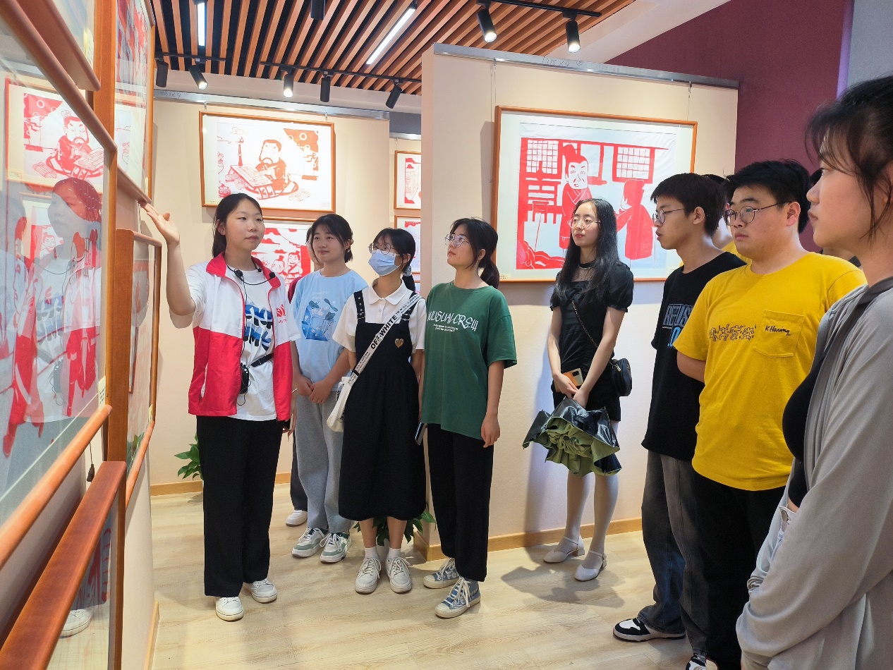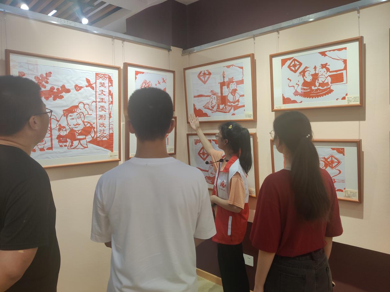 在解说员的引导下,同学们一边聆听一边观看,通过学习历史人物的生平,了解其廉政思想、廉政作品、廉政故事,领悟了荆楚文化中“廉洁精神”的深刻内涵。在楚廉文化剪纸展区,大家观赏了以廉洁文化为主题的剪纸作品。一件件作品将廉洁诗词、名言警句、党纪法规等元素巧妙融合其中,以特有的艺术表现形式,多角度、全方面地诠释了楚廉文化的生动内涵,引起同学们极大的兴趣。