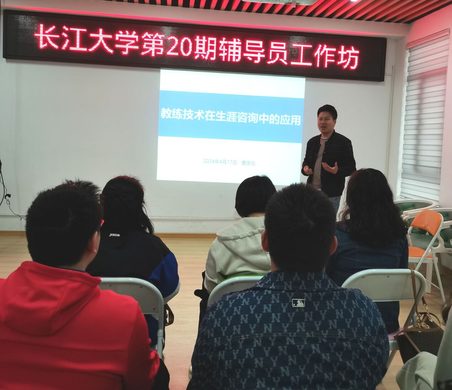 (通讯员 黄小云)4月17日上午,我校第20期辅导员工作坊在宝石花社区203团辅室如期举行。本次工作坊的主题为“教练技术在生涯咨询中的应用”,由农学院辅导员黄承石主讲,党委学工部教育发展办公室黄小云老师主持,来自全校9个学院的20名专职辅导员参加了本次工作坊。