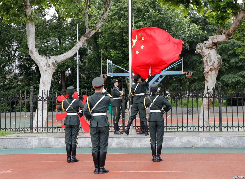 “牢记习近平总书记嘱托,志存高远,脚踏实地,厚植爱国情怀,练就过硬本领,与祖国和人民同呼吸、共命运,为全面建设社会主义现代化强国贡献青春力量!”国旗下的青春誓言冲破云霄。从长江之滨到知音湖畔,迎着国旗的方向,师生深情注视、心潮澎湃。
