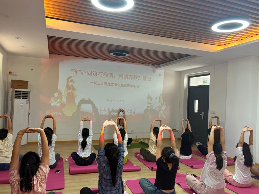 (通讯员 古力齐克热 万钰)4月22日下午,学校荆州东校区宝石花社区206室内洋溢着温馨和谐的氛围,来自各学院(部)的近20位少数民族同学相聚于此,通过“正念冥想、瑜伽体验、舞蹈互动”等丰富多彩的形式,有效释放了身心压力,进一步增进了友谊,更切实感受了民族团结的力量与美好。