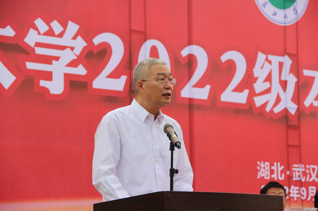 校长冯征代表全校师生对全体2022级本科新生的到来表示欢迎。他高兴地与同学们共同回忆长大走过的峥嵘岁月,分享长大合并组建20年的光荣与梦想。他勉励新生们:第一,用脚步丈量祖国大地,做知行合一的时代新人;除了专业知识的学习,更要注重社会实践,不断将知识更新的“势能”转化为创新创业的“动能”。第二,用眼睛发现中国精神,做信仰坚定的时代新人;继承光荣传统,赓续红色血脉,弘扬中国共产党人的精神谱系,争做社会主义核心价值观的坚定信仰者、积极传播者、模范践行者,第三,用耳朵倾听人民呼声,做爱国爱民的时代新人;牢牢树立“人民至上”的观念,将个人价值追求与祖国发展需要紧密相连,扎根祖国大地,矢志永远奋斗。第四,用内心感应时代脉搏,做勇于担当的时代新人;自信自强,勇于担当,奋进新征程、建功新时代,在全面建设社会主义现代化国家新征程中贡献青春力量。