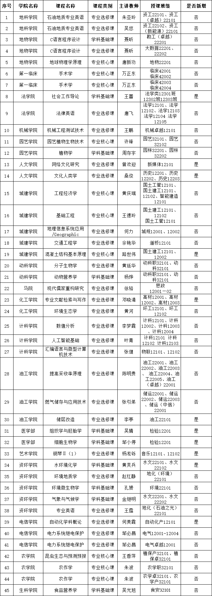 根据2023-2024学年第一学期双语教学课程申报工作的要求和安排,经试讲及专家组评审,现批准地科学院《石油地质专业英语》等45门次课程在2023-2024学年第一学期开设双语课程。(名单详见附件)