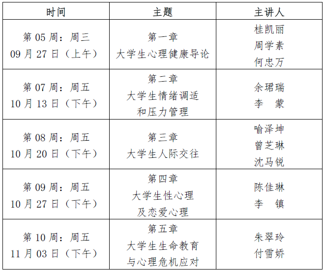 伟德国际唯一官网入口《心理健康教育》课程