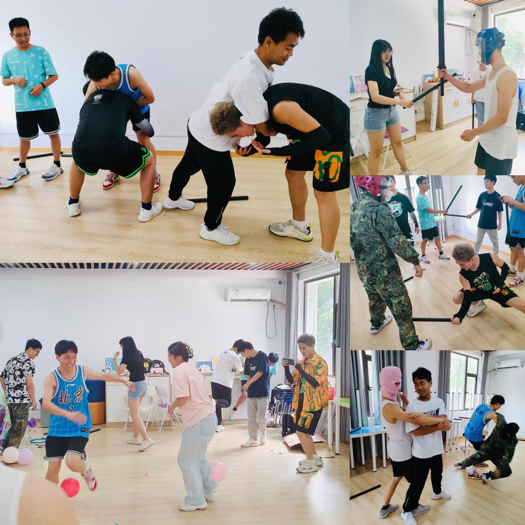 最后,现场开展了“踩气球”趣味游戏,帮助同学们放松身心。每人绑一个气球在脚踝上,互动时需趁对方不备将其踩爆,最后气球仍留存的人即为获胜。大家在一片欢声笑语中相互追逐,运用刚刚学习的防身知识抵御,现场热闹非凡。