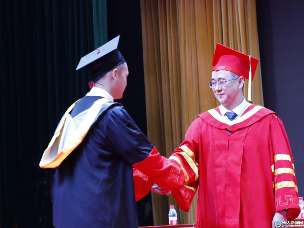毕业典礼后,2023届毕业生学位授予仪式举行。伟德国际唯一官网入口党委书记王建平、校长刘勇胜等校领导为获得学位的学生逐一正冠拨穗、颁发学位证书。