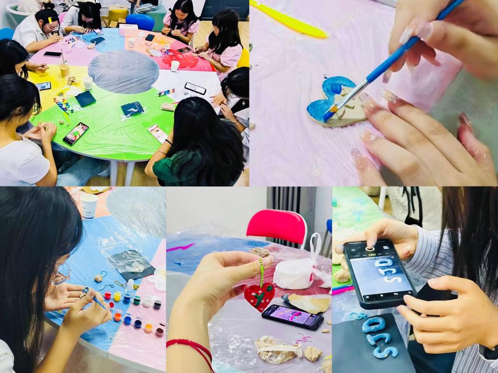 “瞧,我捏的是自家的萨摩哟!很可爱吧?”“哇,你的挂件配色真好看,我羡慕极了!”“我要把自己捏的草莓挂件栓在钥匙上,时刻陪伴左右,好幸福!”在欢声笑语中,同学们淡去了最初的局促感,愉快地交谈着,尽情地创作着。