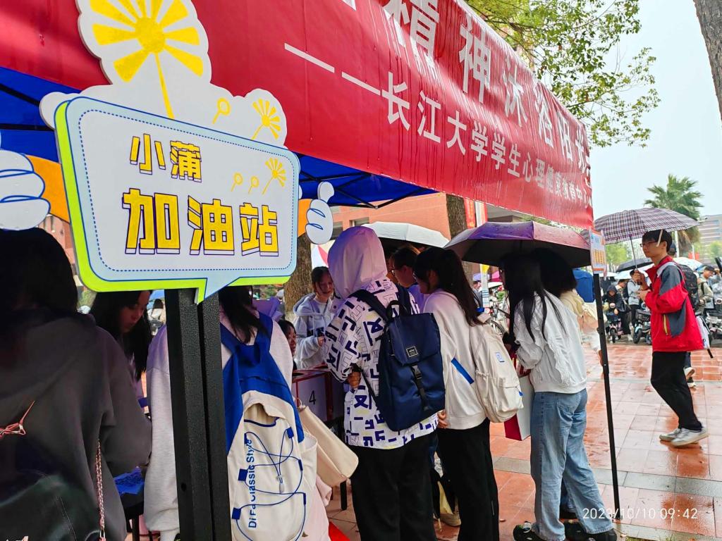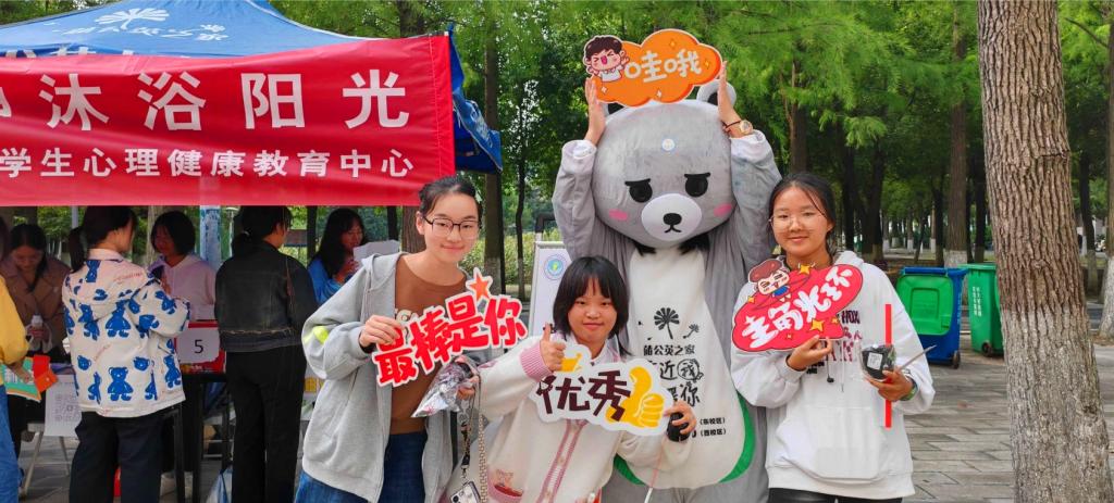 荆州校区以“给心灵一片天空,让精神沐浴阳光”为活动主题,通过“有奖闯关知识问答”的形式展开,共设三个站点。“小蒲科普站”为参与者提供5轮由易到难的心理健康知识问答;“小蒲福利站”陈列的奖品丰富多彩,工作人员根据答题者的应答情况兑换礼物;最后在“小蒲加油站”,师生们可与卡通玩偶合影留念。活动当天,尽管天降小雨,气温微寒,现场气氛却格外热烈。蒲公英之家的志愿者们全心全意投入工作,参与活动的师生热情高涨,欢声笑语一片。本次活动不仅为广大师生增添了生活乐趣,更在校园内有效传播了心理健康意识。