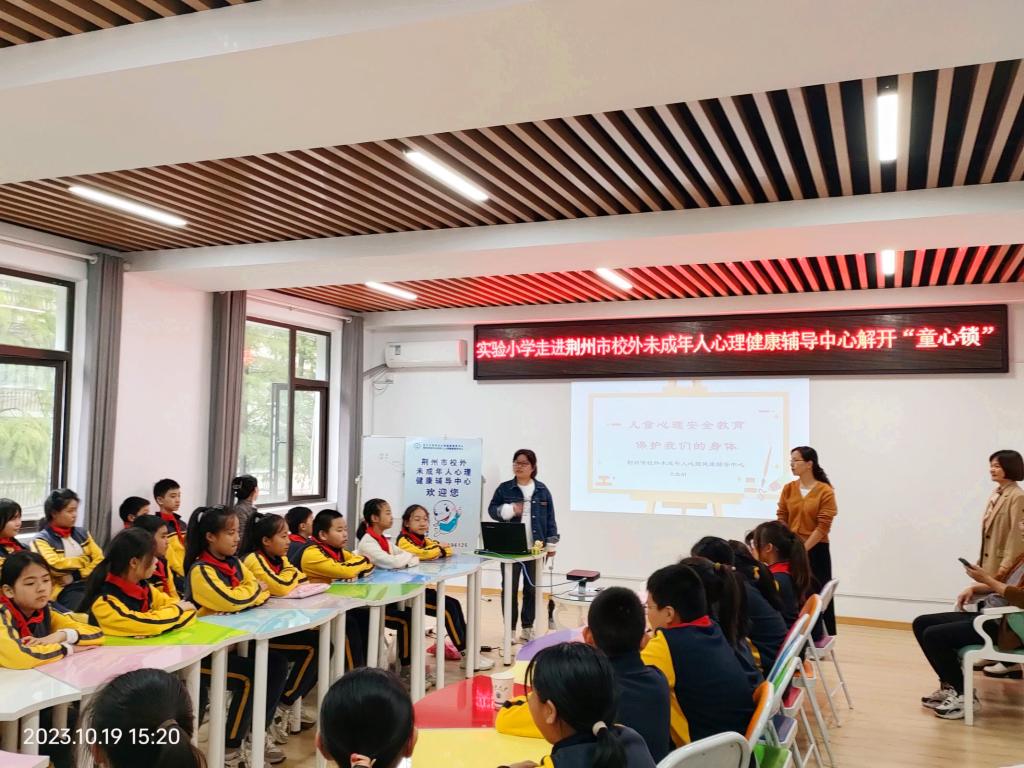 本科生院讯(汪一轩 王娟)“关注心理健康,护航青春成长”,10月19日下午,荆州市校外未成年人心理健康辅导中心顺利举办“解开童心锁”系列活动,荆州市实验小学六年级一班全体学生受邀参观,感受了轻松愉悦的“心灵之旅”。