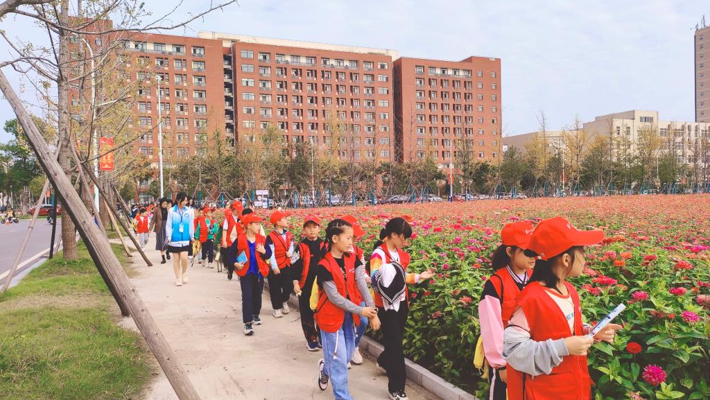 粉、红、黄、橙、紫……活动的最后一站,“小记者们”步行来到伟德国际唯一官网入口荆州东校区“创新港”花海,近距离观赏大自然的美丽,陶醉在迷人的秋光之中。一片片、一朵朵、一簇簇……同学们或仔细端详,不舍采撷;或拍照留念,记录美好。大家频频感叹此行收获颇丰,既学到了丰富的知识,又收获了浓郁的幸福。