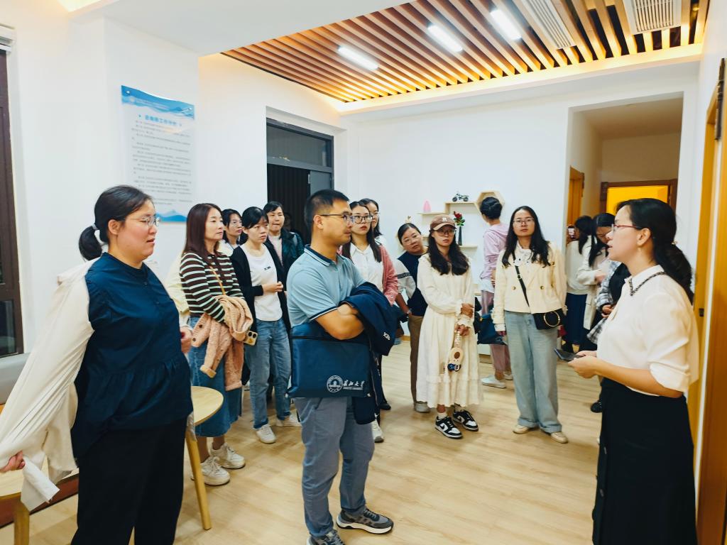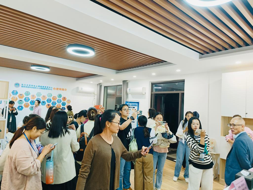 本科生院讯(通讯员 万钰/文 陈錾鑫/摄)“深化合作交流,共谋协同发展”9月20日晚,荆州市中小学老师一行来我校学生心理健康教育中心参观学习。在教育与体育学院副教授郑雪艳的带领下,来宾们实地考察了我校心理育人体系的“场地布局、硬件设施、基本理念、特色品牌”等,并相互交流了工作经验。