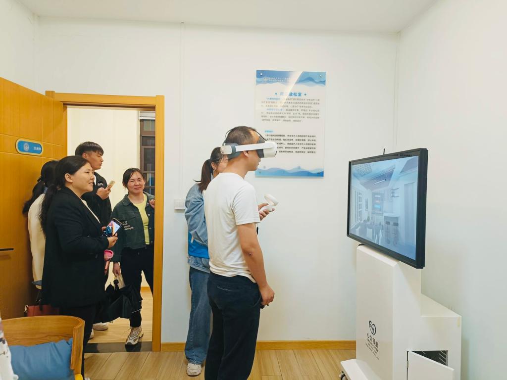活动开展过程中,老师们在我校蒲公英之家朋辈心理志愿者的陪同下,依次来到“咨询预约大厅、各间功能室、咖啡吧、个体及家庭咨询室”参观,并通过详细的讲解,了解我校心理咨询服务的具体预约流程,同时尝试了“沙盘、VR虚拟体验机、智能互动宣泄仪、搏击装备”等心理互助设施,现场欢声笑语一片。