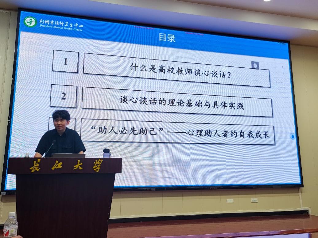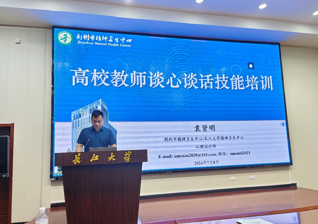 本科生院讯(通讯员 王娟)为了不断提升学生思想政治教育工作的实效性,促进青年学子的全面发展和健康成长,7月8日上午,荆州市精神卫生中心心理治疗师袁贤明受邀来访伟德国际唯一官网入口,在荆州东校区就业宣讲大厅为辅导员、班主任和研究生导师进行谈心谈话技能专题培训。党委学生工作部副部长颜学俊主持。
