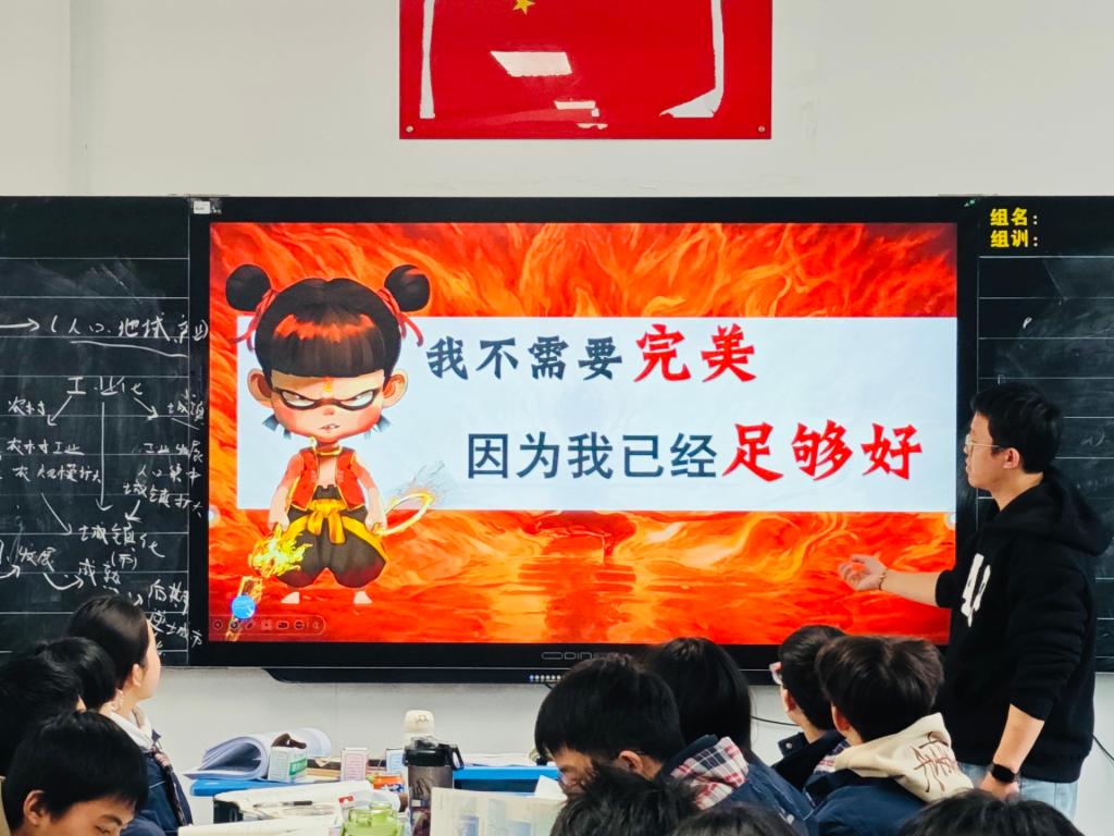 “如果你是哪吒,出生便被贴上了‘魔童’的标签,会产生哪些心理活动呢?”“‘心理乾坤圈’存在于每个人的生命中,仔细思考并罗列几条,谈谈自己挣脱束缚了吗?”“哪吒或多或少存在‘容貌焦虑、人际冲突、成绩挫败’等困惑,让我们不妨尝试从‘灵珠’的视角改写故事的结局吧!”……讲座还设置了许多互动环节,助力同学们更好地理解“勇敢面对不完美才是真正英雄”的人生真谛。