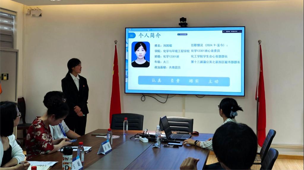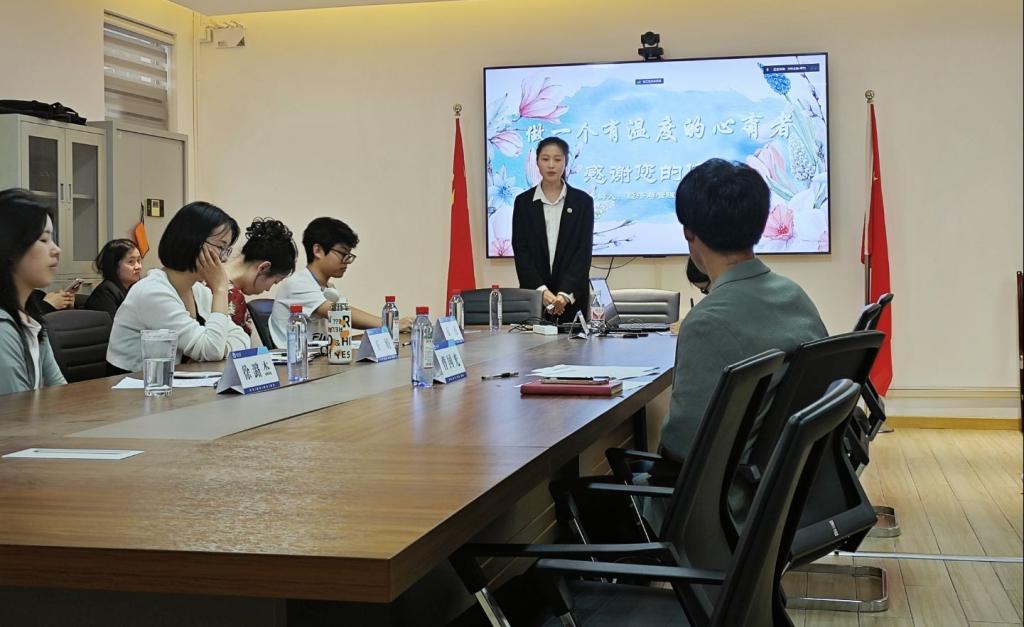“作为班级心育委员,我认真履行岗位职责,累计策划组织了30余场心理主题班会”“我致力于成为校园心理危机干预的哨兵,曾协助老师跟进了数十名重点关注同学的近况”“未来,我将不断提升个人专业素养,通过参加心理培训,持续增强风险识别与防范意识。”在4月24日的答辩现场,候选人结合5分钟的PPT展示,援引详实的案例和数据,汇报了自己的“工作成果、经验方法、未来规划”等内容,展现了我校朋辈心理辅导队伍扎实的业务能力与温暖的助人情怀。