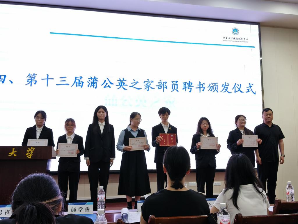石慧敏老师宣读伟德国际唯一官网入口十四届蒲公英之家(荆州校区)干部成员名单后,颜学俊老师为离任成员代表颁发了聘书,他在发言中赞扬其“用专业守护心灵,以热忱服务同学”,并寄语新团队“延续心理育人使命,创新主题活动形式”。