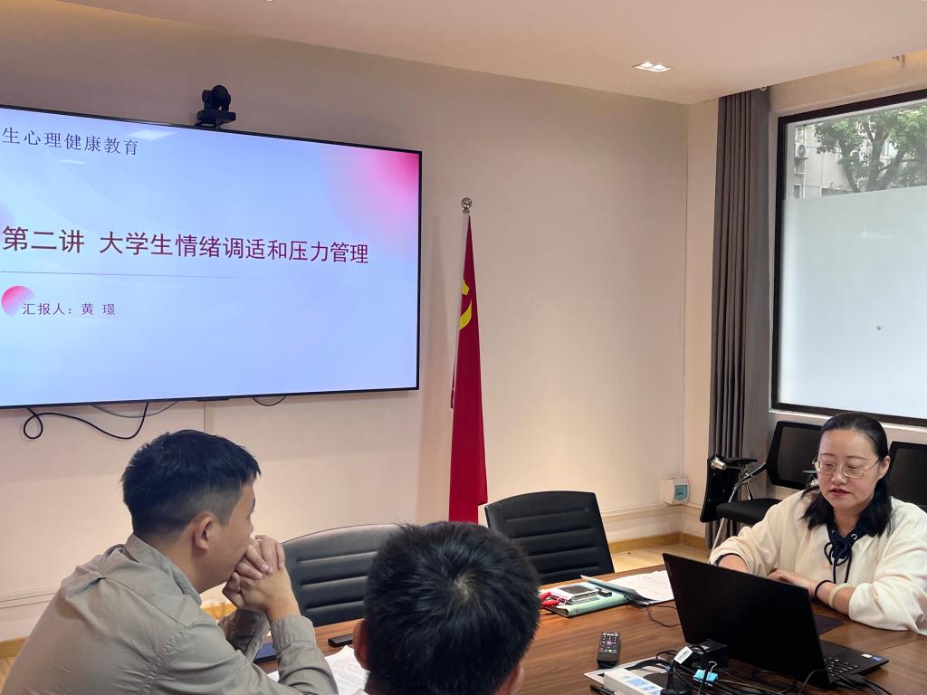 随后,在“新任教师试讲”环节,黄璟、马天雨老师依次登台,围绕选定的主题进行10分钟的教学展示。其中,黄璟老师讲授“压力概述”相关知识点,通过简易的压力自测小游戏,快速引导学生进入教学情境,并清晰讲解了压力的概念、来源、影响,内容完整且富有逻辑。马天雨老师则聚焦“大学生心理健康”,结合当下青年群体的特点,辅以生动有趣的案例,分别剖析“心理健康的定义及标准、大学生常见心理问题的识别与干预、有效提升身心健康的方法”等内容。