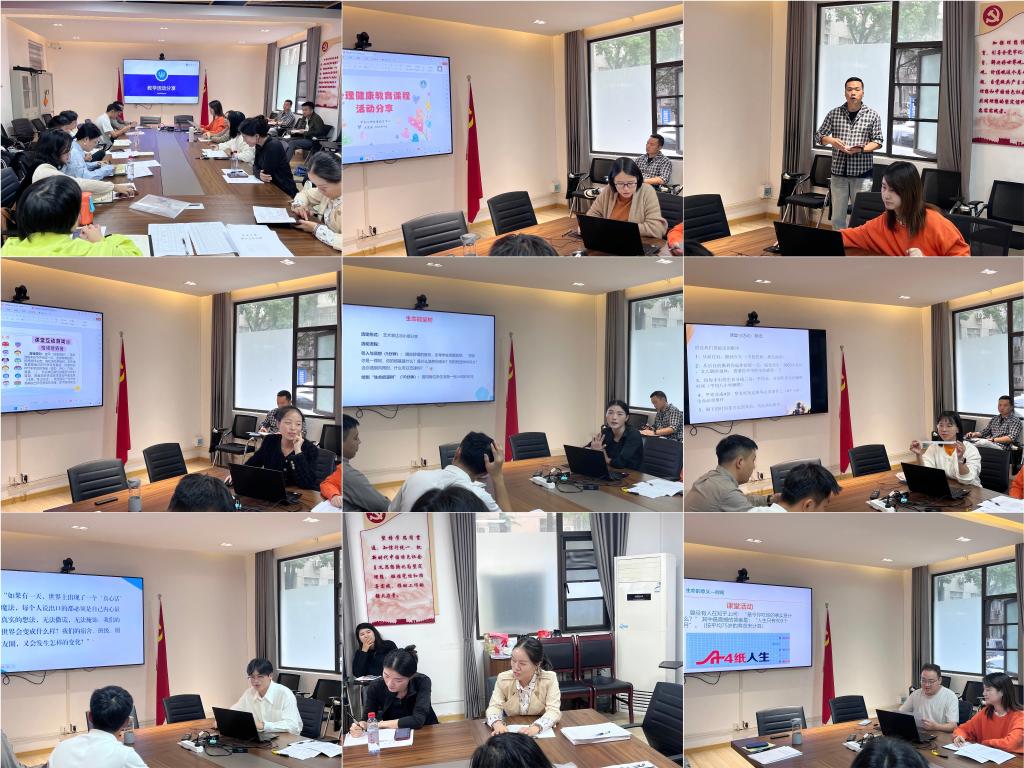 最后,进入“教学活动分享”环节,老师们结合自身经验踊跃交流,展示了诸多有趣且兼具教育性的设计。比如:关于情绪的“情绪猜猜猜、情绪传递球、情绪魔法秀”;关于压力的“压力气球/雪球、我的压力圈”;关于人际的“人际调查、沟通情境模拟、假如人人都说真心话、信任盲行”;关于生命的“撕纸条、生命能量源泉、模拟人生”;还有活跃课堂氛围的指尖操、手势舞、默契游戏……老师们积极探讨各类活动的实施与效果,为进一步提升教学质量拓宽了思路。
