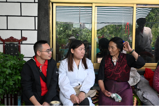 这次“三下乡”,卓嘎不再只是去年那个默默帮我们翻译的学生,反而成了团队服务当地老乡的“主心骨”。在加查县巧巴村义诊时,她不光能熟练翻译医学术语,还主动用藏语给老乡讲高原病预防知识,把“低盐饮食”“定期测血压”这些专业内容说得通俗易懂。遇到老人对检查结果不放心,她会拉着老人的手,用家乡话讲自己在学校学的健康常识,慢慢打消顾虑。