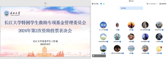 本科生院讯(通讯员 吴立鹤)6月4日上午,2024年第二次特困救助专项基金表决会通过腾讯会议线上召开。会议由学生资助中心黄璟主持,学生资助中心吴立鹤,油工、资环、园林、机械、经管、教体等学院的资助专干,以及26个学院的学校特困救助基金管理委员会学生委员通过“线上+邮件”的方式参与会议。