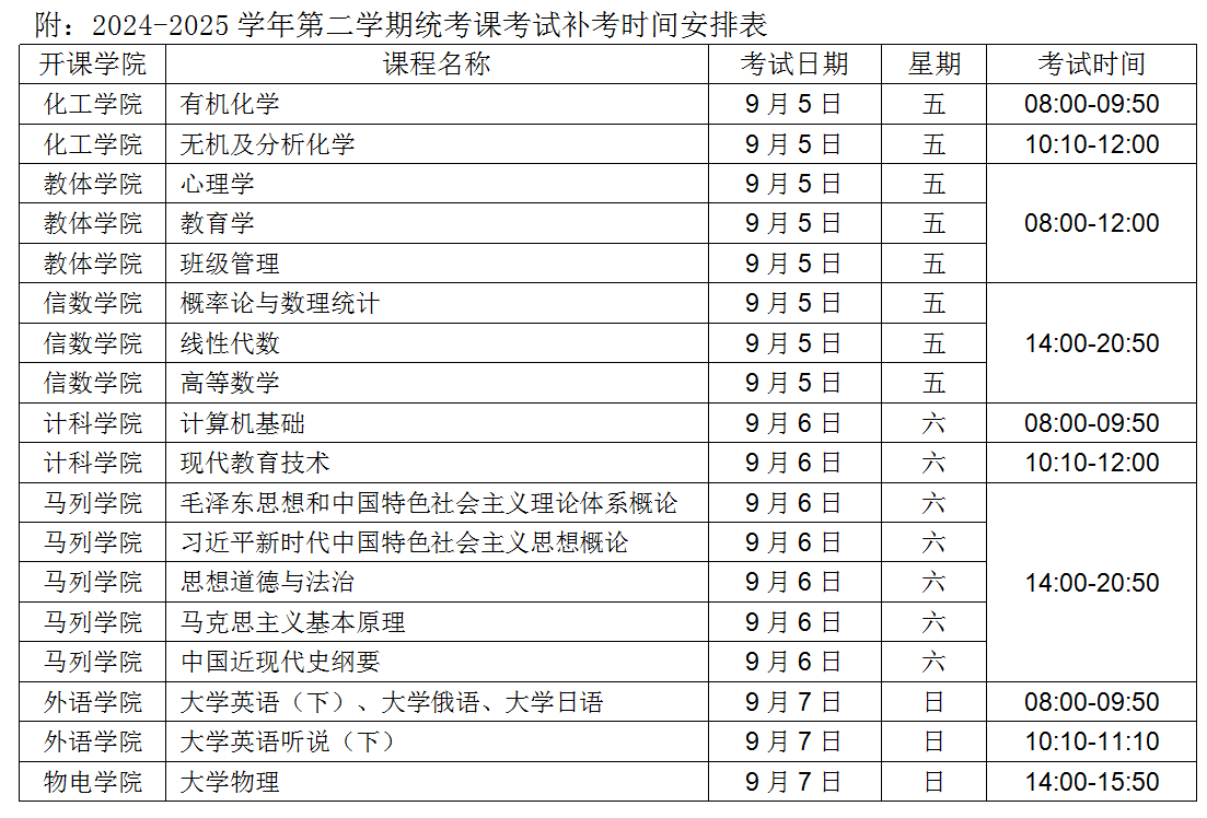 1. 所有课程补考均在教务管理系统内由各开课学院负责安排。所有课程补考工作要求在97日前完成考试。