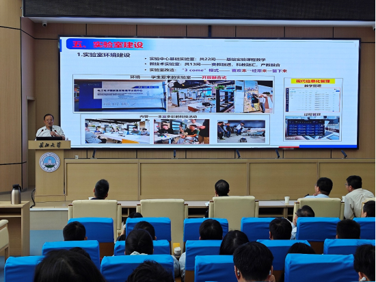 邓教授详细介绍了其在课程实施中的具体举措:依托“课前线上导学—线下理论授课—实验操作—课后线上拓展”四位一体教学模式,打造沉浸式、全过程的学习环境。在实践教学方面,他主导建设了开放式、模块化的实验教学体系,并搭建一体化实验平台,有效推动产教深度融合,实现从“教知识”向“育能力”的转变。