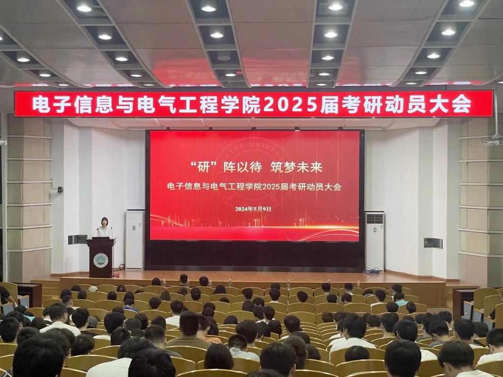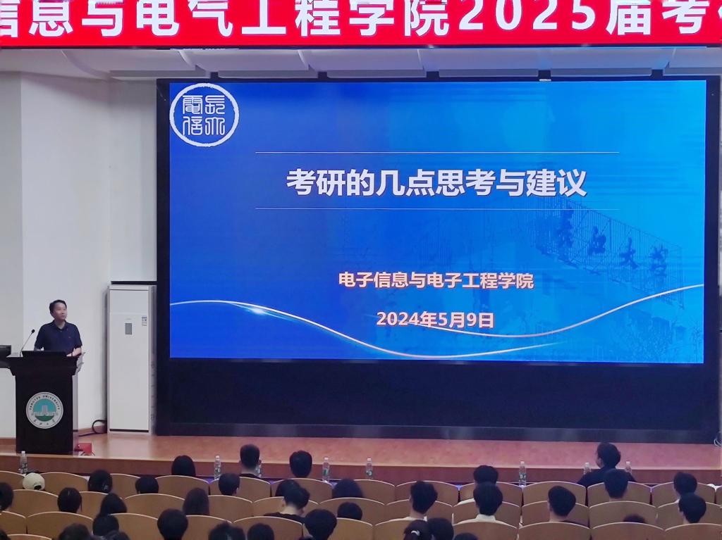 为充分激发我院学生考研积极性,认清考研形势,明确考研目标,5月9日晚,电子信息与电气工程学院2025届本科生考研动员大会在12教405报告厅举行。副院长魏勇、党委副书记张晨露、海文教育湖北分校高级巡讲师涂光华及2021级全体本科生参加会议,大会由辅导员李蒙老师主持。
