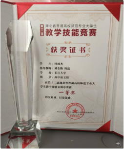 2023年11月11日湖北省第十二届高等学校师范专业大学生教学技能竞赛决赛在华中师范大学隆重举行,我校有15名学生作品参加初赛,经省专家评委会评选出6名选手代表我校进入决赛。通过教学设计、课件制作、即兴讲演以及模拟授课这四个环节的紧张激烈角逐,我校杨雨杰(指导老师:刘金勤,周霜)、杨淑慧(指导老师:黄晓娟,余瑞艳)两名同学分别获得高中语文组一等奖,初中数学组一等奖。另外余俊岚等4名同学获得二等奖,王浩等4名同学获三等奖。