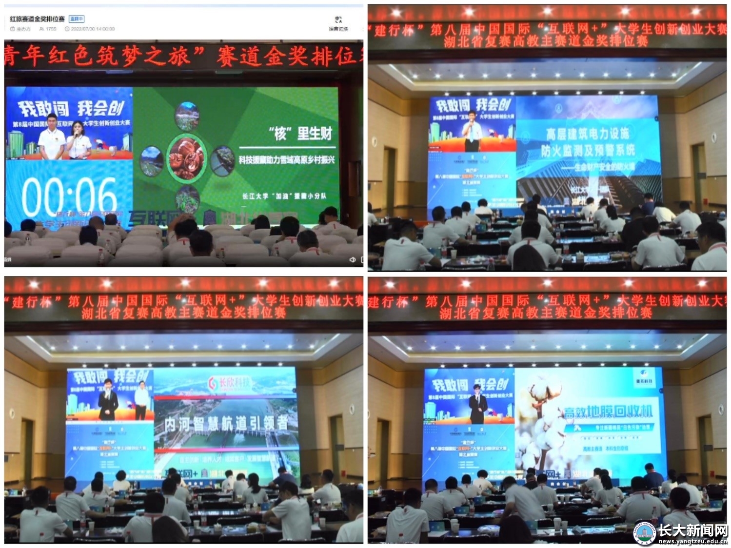 荣获本届“互联网+”省赛金奖的4个项目分别是《长欣科技——内河智能航道引领者》《高效地膜回收机——专注新疆棉田“白色污染”治理》《高层建筑电力设施防火检测及预警系统——生命财产安全的防火墙》和《“核”里生财——科技援藏助力雪域高原乡村振兴》。
