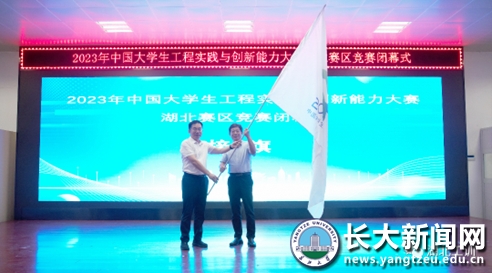 我校将首次成为中国大学生工程实践与创新能力大赛湖北赛区的承办单位(2025年)。副校长江厚顺从武汉理工大学副校长沈革武手中接过湖北赛区推荐赛赛旗,并发表了讲话。