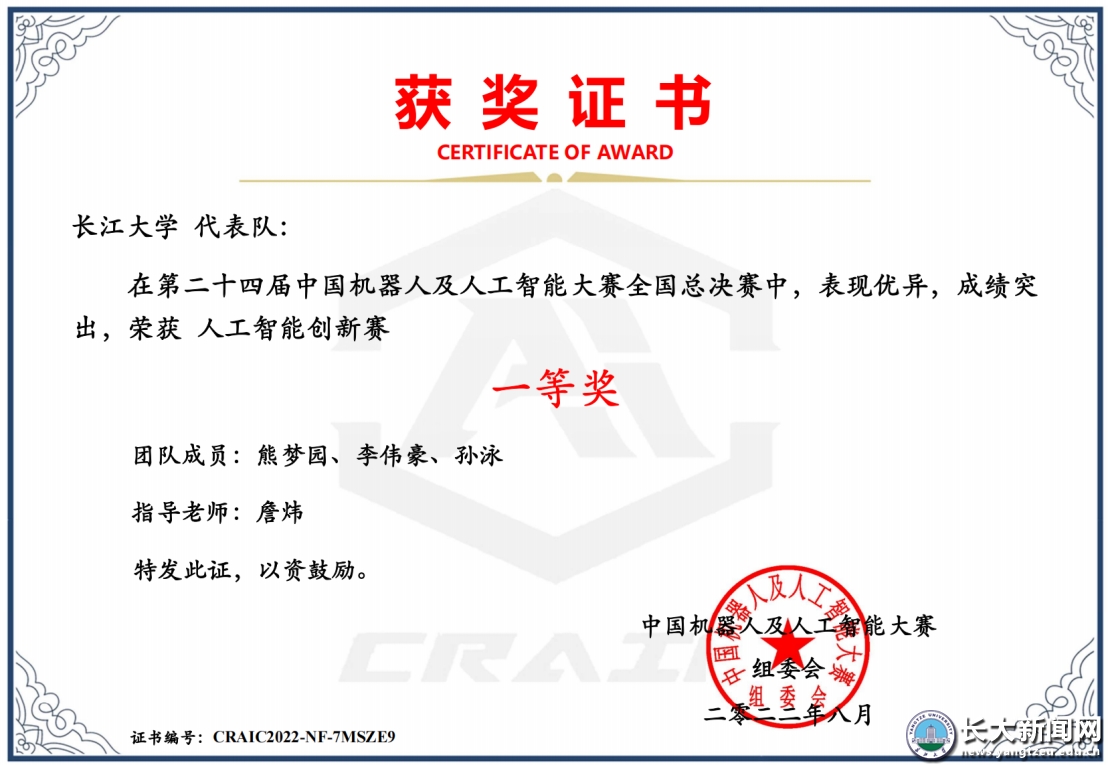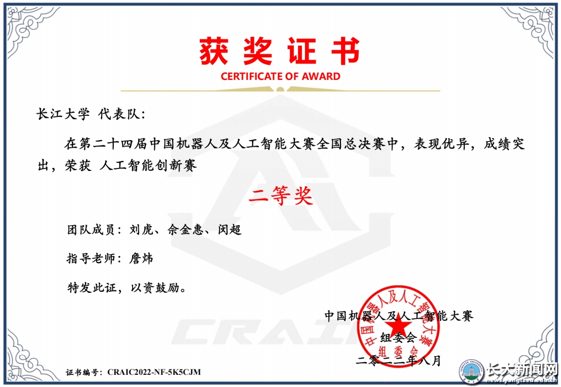 新闻网讯(通讯员 熊梦圆)近日,第二十四届“中国机器人及人工智能大赛”全国总决赛在线上举行,计算机科学学院研究生团队的“智慧航运——无人机智能船舶水尺读数系统”和“智慧巡检——基于移动端的无人机对地小目标检测与应用”两项作品分别获得全国一、二等奖。