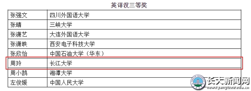 新闻网讯(通讯员 车桥)10月21日,第三十三届韩素音国际翻译大赛获奖名单出炉,外国语学院研究生周玲同学在25000余名参赛选手中脱颖而出,荣获英译汉三等奖。