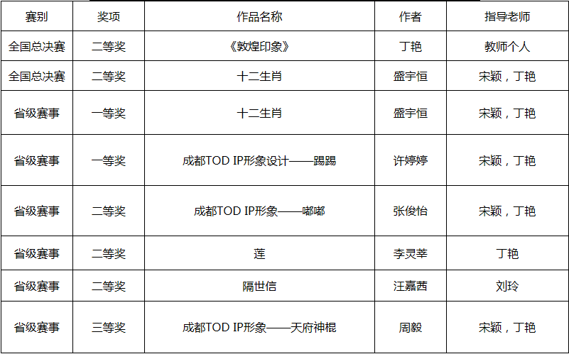 新闻网讯 近日,第九届全国高校数字艺术设计大赛(NCDA)省赛及全国总决赛获奖名单揭晓,艺术学院师生在比赛中喜获8个奖项。其中丁艳副教授作品《敦煌印象》获得全国总决赛教师个人奖二等奖;视觉传达专业盛宇恒同学作品《十二生肖》获得全国总决赛学生组二等奖;另外在省级赛事中,艺术学院学子分别荣获一等奖两项、二等奖三项、三等奖一项。