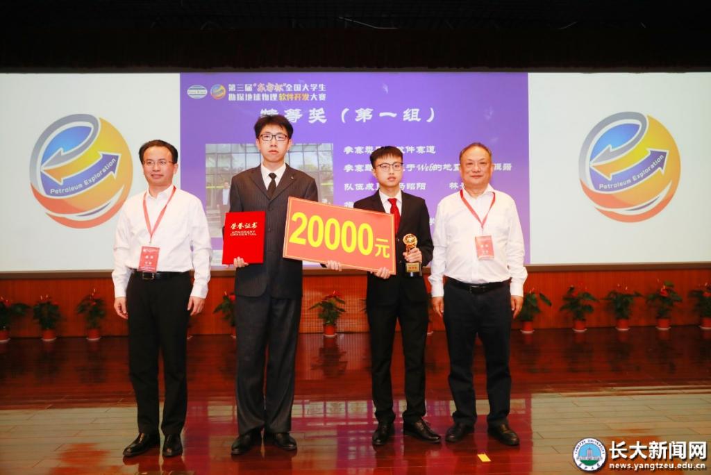 新闻网讯 10月13日,第三届“东方杯”全国大学生勘探地球物理软件开发大赛在中国石油大学(华东)举行。地物学院代表队马昭阳和林贵蓝同学荣获软件赛道唯一特等奖,白敏和方思南老师获“优秀指导教师”称号,我校获优秀组织奖。中国地球物理学会副理事长苟量、中国石油集团公司物探首席专家张少华为我校代表队颁奖。