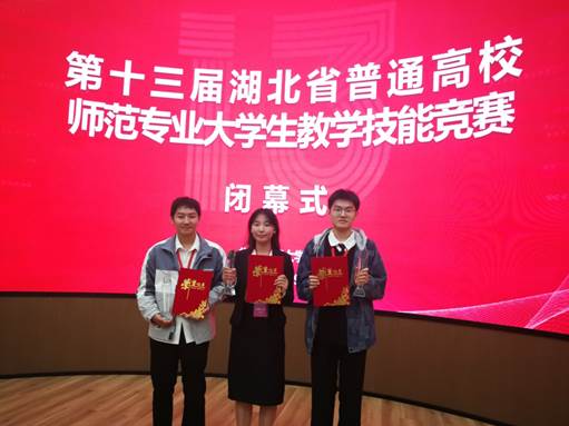 11月9日,第十三届湖北省普通高校师范专业大学生教学技能竞赛决赛在华中师范大学隆重举行。此次湖北省师范专业大学生教学技能竞赛由湖北省教育厅主办,旨在以赛促学,提升师范生的教学实践能力和综合素质。来自全省各高校的优秀师范生齐聚一堂,我校有15名学生作品参加初赛,经省专家评委会评选出3名选手代表我校进入决赛。通过教学设计、课件制作、即兴讲演以及模拟授课这四个环节的紧张激烈角逐,我校蔡思敏同学(指导老师:张静)获得高中物理组一等奖,刘佳意同学(指导老师:蒋娟,梅妮)和陆栩洋同学(指导老师:童金强)分别获初中英语组和高中化学组二等奖。另外李梦瑶等6名同学获三等奖。